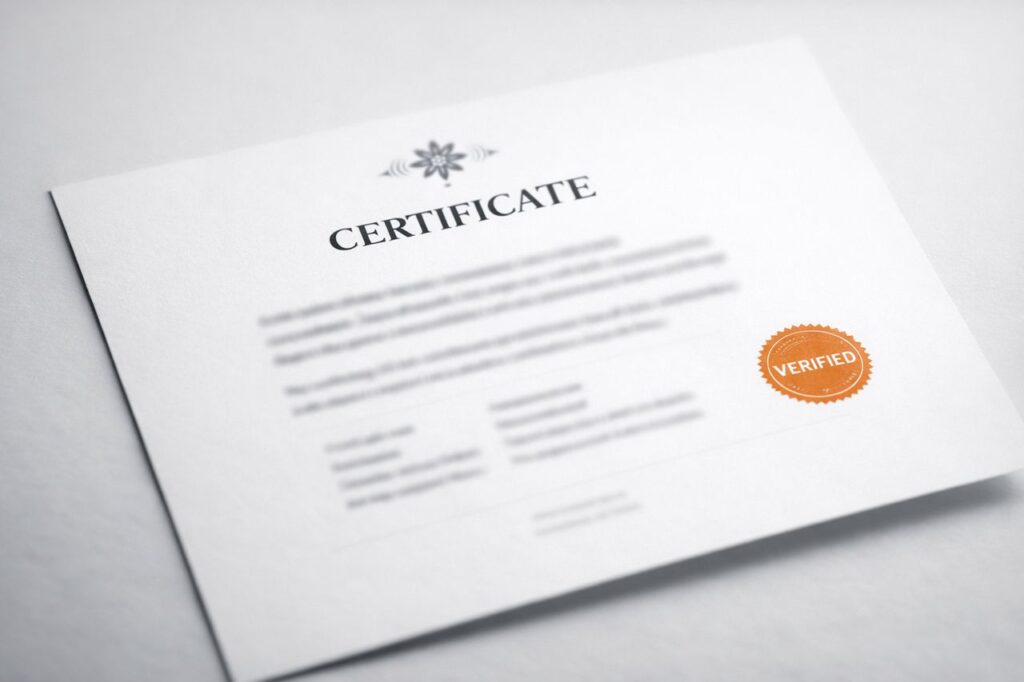 Nach erfolgreicher Prüfung wird ein offizielles Zertifikat ausgestellt.
